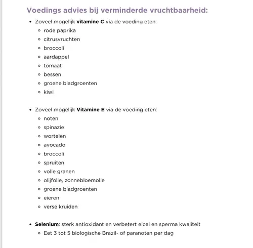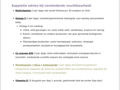 Ik heb 2 documenten gekregen met allemaal advies om de vruchtbaarheid 'op t ...