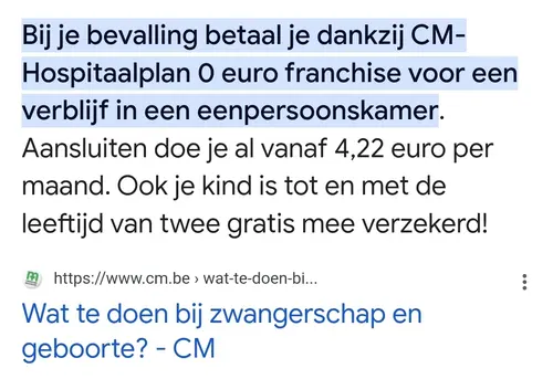 Ben je gewoon aangesloten bij cm of heb je daar ook een hospitalisatieverzekering. Dit maakt namelijk een groot verschil. En ook de dekking die je koos bij het afsluiten van je hospitalisatieverzekering. Ik betaal bijvoorbeeld meer voor mijn hospitalisatie verzekering omdat ik koos voor dekking van een éénpersoonskamer. Ik kon ook kiezen voor gewone dekking (een tweepersoonskamer dus) en dit was goedkoper.