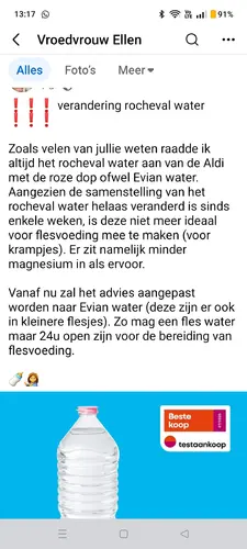 Ja klopt. Ik had er eentje gekocht en de mineralenverhouding vergeleken met die van de roze dop, maar die bleek toch heel anders. Omdat mn baby gevoelig is voor alles, wilde ik geen risico nemen en ben ik overgestapt op Evian