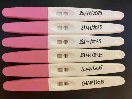Ik had vandaag pas mijn eerste positieve test... Ik was inmiddels op dag 39!! van mijn cyclus en dus al dik een week over tijd. Ik vermoed dat mijn ovulatie later was dan anders... Want twee dagen geleden nog negatief getest.