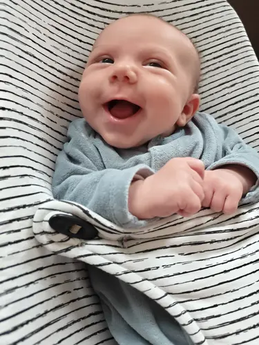 Wij hebben sinds vorige week de eerste lachjes gehad, dus net voor zijn 5 weken 🥰 vandaag eens goed kunnen vastleggen 🥰