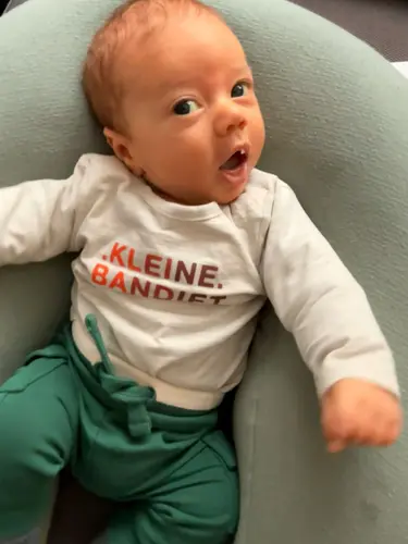 Op exact zeven weken keek je me aan, echt aan, en daar was het ineens, een klein, bewust lachje. Geen toevallige grimas, geen reflex... maar jij, die mij herkende. Mijn hart stond even stil. In dat ene moment voelde ik hoe groot onze band al is, hoe je me ziet, hoe je antwoord geeft op mijn liefde.