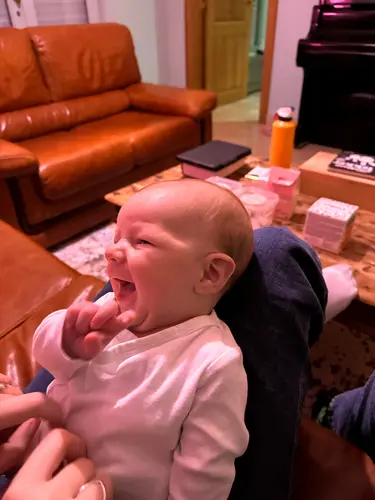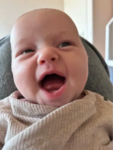 Het was zo’n lachje dat alles zachter maakt. De gebroken nachten, de vermoeidheid, de onzekerheid, ze vielen allemaal weg. Jij zei zonder woorden: “Mama, ik ben hier. Ik zie je.” En ik wist weer waarom elke seconde het waard is.