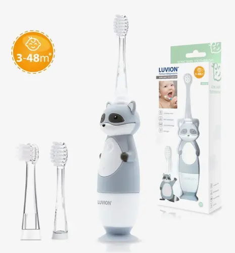 Hier gebruiken we een elektrische tandenborstel voor baby’s. Hiermee gaat h ...