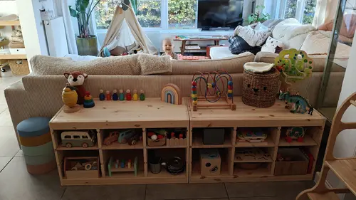 Wij hebben een kallax kast met 8 vakken en 8 bakken zodat het wat ordelijk toont. Ervoor een mat en op de kast het grote speelgoed wat niet in de kast kan. Klimrek en loopauto, loopfiets staat in de berging/garage en zet ik geregeld in de living. Dan nog aan de andere kant een kalax kast met 2 vakken zonder bakken. Hier zet ik geregeld anders speelgoed dus hier kan hij altijd aan. Met kerstmis krijgt hij nog een keukentje 鈽猴笍 boven heeft hij ook speelgoed want hij heeft nu al zooooveel馃檲 ik rouleer de bakken regelmatig en dat helpt zodat speelgoed interessant blijft鈽猴笍