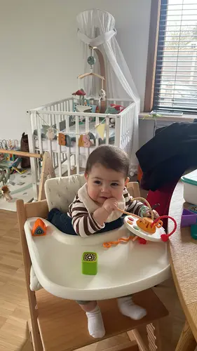 Onze dochter is 7maand geworden en zullen deze week haar eetstoel opzetten om te beginnen gebruiken . Ze kan ook al rechtzitten met steun dus zal waarschijnlijk met handdoeken wat extra steun aanbieden want nu krijgt zij haar eten nog in haar wipstoel maar begin dit zeer onhandig te vinden omdat ze met haar voeten non-stop mijn armen wegschopt of probeert vast te nemen en er dus overal eten vliegt 馃ぃ