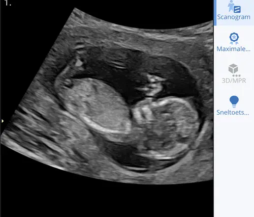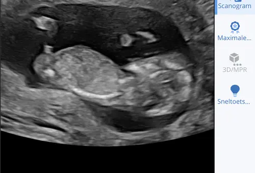 Het ligt misschien aan mij, ik ben geen expert, maar ik denk dat het op deze echofoto moeilijk tot niet te zien is. Ik zie het desbetreffende streepje niet (of ik denk dat het deel uitmaakt van het beentje 🤭). Misschien iemand anders wel? Of heb je een betere foto?