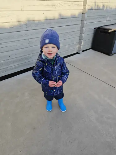 Zegt nog niet veel woorden maar kan wel alles duidelijk maken met zijn gebrabbel.