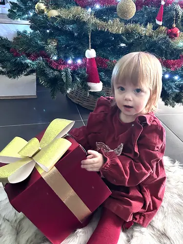 Maylé op de foto die ik maakte voor het kerstkaartje.