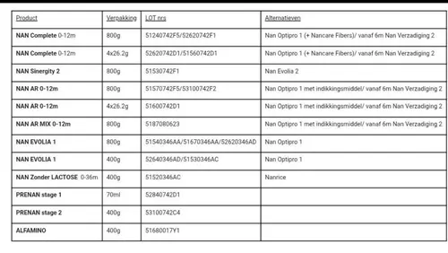 Wij hebben ons baby’tje ook voeding uit een pot van een teruggeroepen batch gegeven 😠😫 hebben nu nog maar een halve pot Nan Complete 0-12 maanden… Nergens meer potten te verkrijgen!! Iemand met hetzelfde probleem en die een oplossing heeft gevonden? 😩😩😩