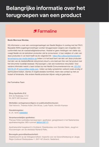 Wij kregen als apotheek het volgende advies van firma Nestlé als vervanging ...