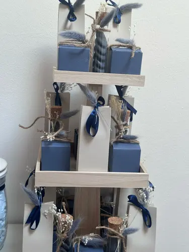 We gaan 3 soorten suikerbonen geven (hoog doosje, schuifdoosje & linnen doekje) en dan glazen buisje met himalayazout & dan nog mix van zeepje en kaarsje. Wss gaan we die niet op de babyborrel zetten maar gaan we pennen laten maken met haar naam op voor als extra. Voor de kindjes wss zakje snoep met een windmolen potlood eraan, daar ben ik nog voor aan twijfelen.