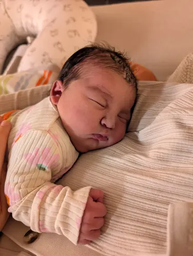 Gebroken vliezen op 12/11/2025 om 3:20, er kwam niets op gang. Na een hele dag afwachten ‘‘s avonds naar het ziekenhuis gegaan omwille van langdurige, gebroken vliezen. Rond middernacht begon daar spontaan de bevalling en een dik uur later was hij geboren. Ons derde kindje 🤎