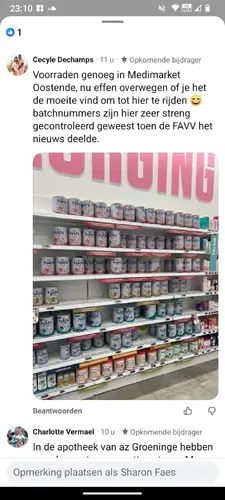 Ik heb nog een pot van 800 gram. Geopend sinds sinds 16 januari, slechts 4 flesjes mee bereid (moest overschakelen wegens allergie). Je mag hem komen halen als je wilt, regio heist-op-den-berg!