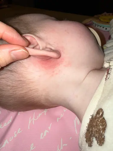 Weet iemand wat dit zou kunnen zijn? Gisteren had hij enkele bultjes achter zijn oor en nu is het een rode vlek geworden en verspreiden de bultjes zich op het aangezicht.