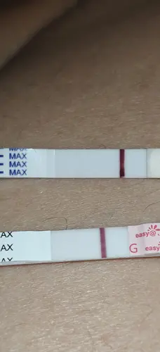 Het streepje zal wel echt zijn. Beide merken geven wel eens valse testen, m ...