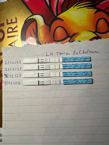 Heyhey ben weer naar ginicloog geweest 2 december eitje was tissen 14/15 cm ik ben toen ook gestort le ovuluatie testen 24 nov men regels gehad tot 29 ste nu moet ik morgen 5 dec terug enbdan gaan ze kijken of me folikel eitje groot genoeg is en dan krijg ik een spuitje voor me ovuluatie te helpen omdat ik enkel lichte streepjes altijd krijg