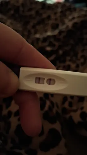 Hij ziet er donkerder uit. Morgenochtend nog eens testen, maar niet met ochtendurine, met derde plasje ofzo. Als dat lukt natuurlijk. En dan morgenmiddag nog eens testen.