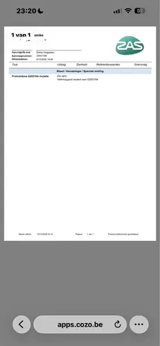 Oh je ziet het niet goed er staan : (Protrombine G20210A mutatie )en dan er achter (Zie opm.