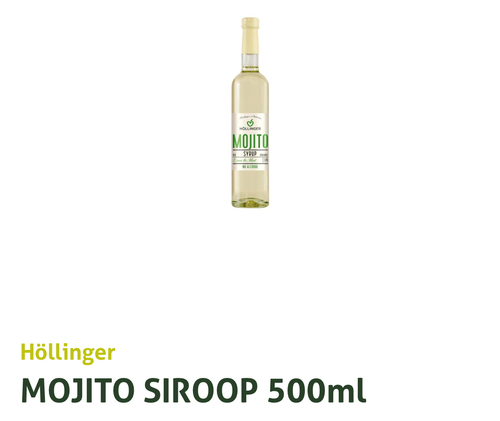 Vul een grot glas met veel ijsblokjes, doe de mojito siroop en het limoensap erin. Leng aan met spuitwater. Roer de ingredi毛nten en werk af met muntblaadjes en een schijfje limoen.