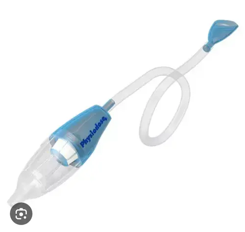 Ik spuit eerst met een neusspuitje in elk neusgat 1ml fysio water ( kindje op de zij leggen) dan even laten zitten voor te bekomen, terug neerleggen en je krijgt er dubbel zo veel uit ! En idd na elke keer vervangen … heb heel veel extra kopstukjes er bij gekocht meteen. Het blijven toch wel bacterien…