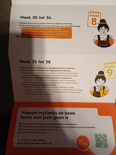 Het startbedrag kan je al aanvragen wanneer je 5 maand zwanger bent en dat wordt dan zo'n 2 maanden voor de uitgerekende datum gestort. Er zijn dacht 5 'bedrijven' waar je je bij kan aansluiten voor het startbedrag en daarna automatisch het kindergeld. Ik denk dat er niet zo heel veel verschil in zit, maar je kan eens op hun websites kijken: FONS, Infino, KidsLife Vlaanderen, MyFamily en Parentia.