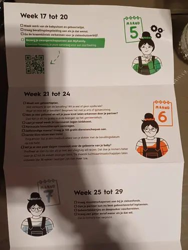 Verder kan je eventueel kraamzorg al aanvragen als je dat wil. Dan kunnen ze alvast het dossier opmaken.