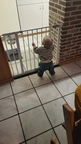 Sinds ons zoontje kan kruipen hebben we deze in de keuken gezet zodat hij niet aan de voer/drinkbak of de oven komt.