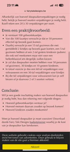 Wij hebben eerst geteld hoeveel geboortekaartjes we gaan versturen en opgelijst aan wie. Dan hebben we de lijst afgegaan en bedacht ‘gaan die op bezoek komen?’ En gekeken wie het is die op bezoek komt. Voor de grootouders hebben we 3 stuks geteld, voor gewoon een ‘gezin’ hebben we 2 stuks geteld en voor de kindjes hebben we een pot met ballonnen omdat we bv 4 stuks suikerbonen mee naar huis geven wel wat veel vinden. Bij dat aantal hebben we wel nog wat ‘reserve’ bijgeteld. Hangt ook af of je een babyborrel gaat geven of niet