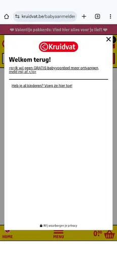 Ik heb die wel kunnen invullen denk ik, zo raar dat je dat niet kon doen. Heb je zowel op app en op site geprobeerd? En staan er nu extra babydeals in je app? Nog voor ik de mail kreeg, stonden er extra babydeals bij mijn persoonlijke deals